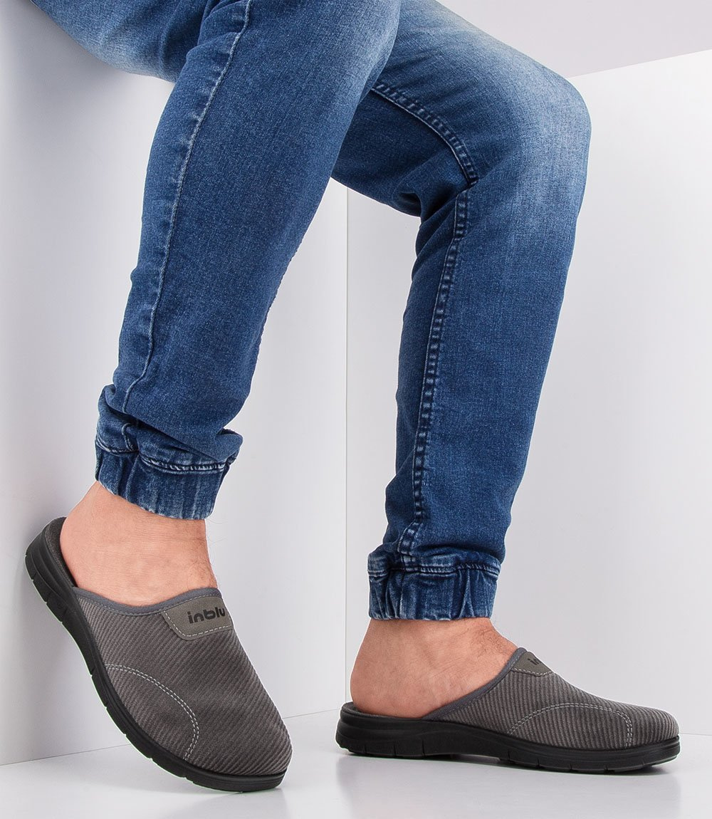 Wysokiej jakości kapcie męskie Inblu, wykonane z materiału tekstylnego z dużą zawartością bawełny.
