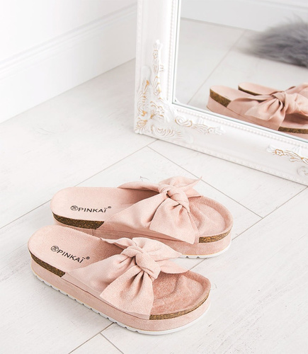 Klapki damskie z kokardą Pinkai W004 Różowe