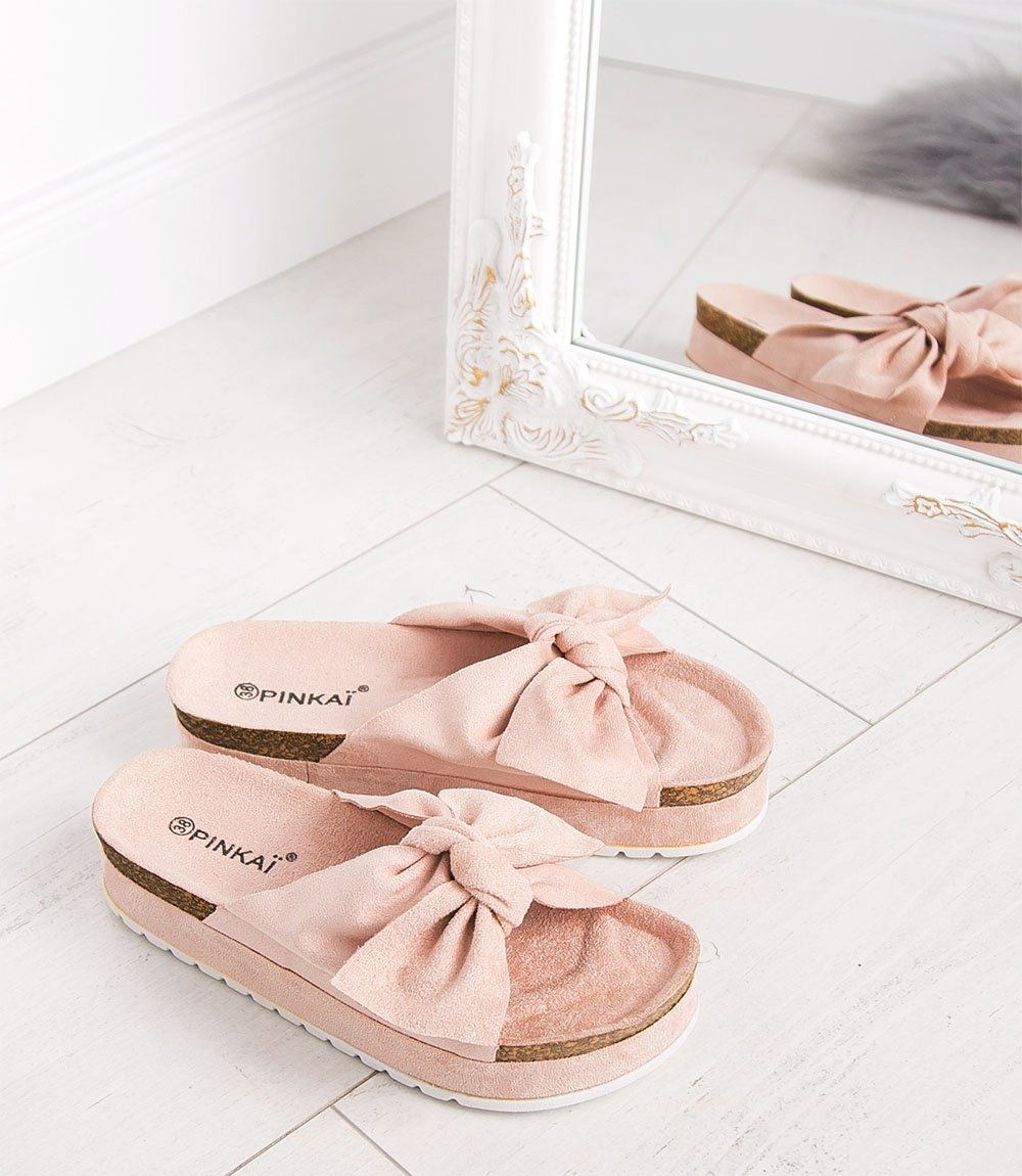 Zachwycające klapki z kokardą Pinkai wykonane z największą starannością.