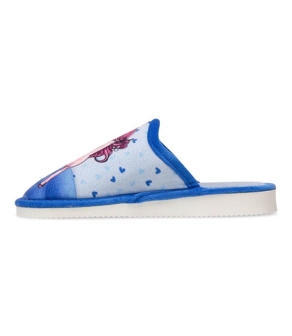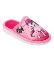 Kobiety lubią dobrze wyglądać - nawet te najmłodsze! Dobrze jest, jeśli kapcie dla dziewczynki zaspokajają jej wizualne potrzeby. Przepiękny motyw różowego jednorożca współgra z kilkoma odcieniami niebieskiego. Na nadruku widzimy też serduszka, które dodają uroku całej grafice. Kolorowe kapcie umilą dzień niejednej wielbicielce bajecznych stworzeń. Natomiast jej rodzice będą spokojni o jakość materiałów i bezpieczeństwo pantofli domowych dziecięcych. A także - skuteczną ochronę przed chłodem.