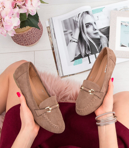Urocze mokasyny damskie Abloom ze złotą klamerką.
