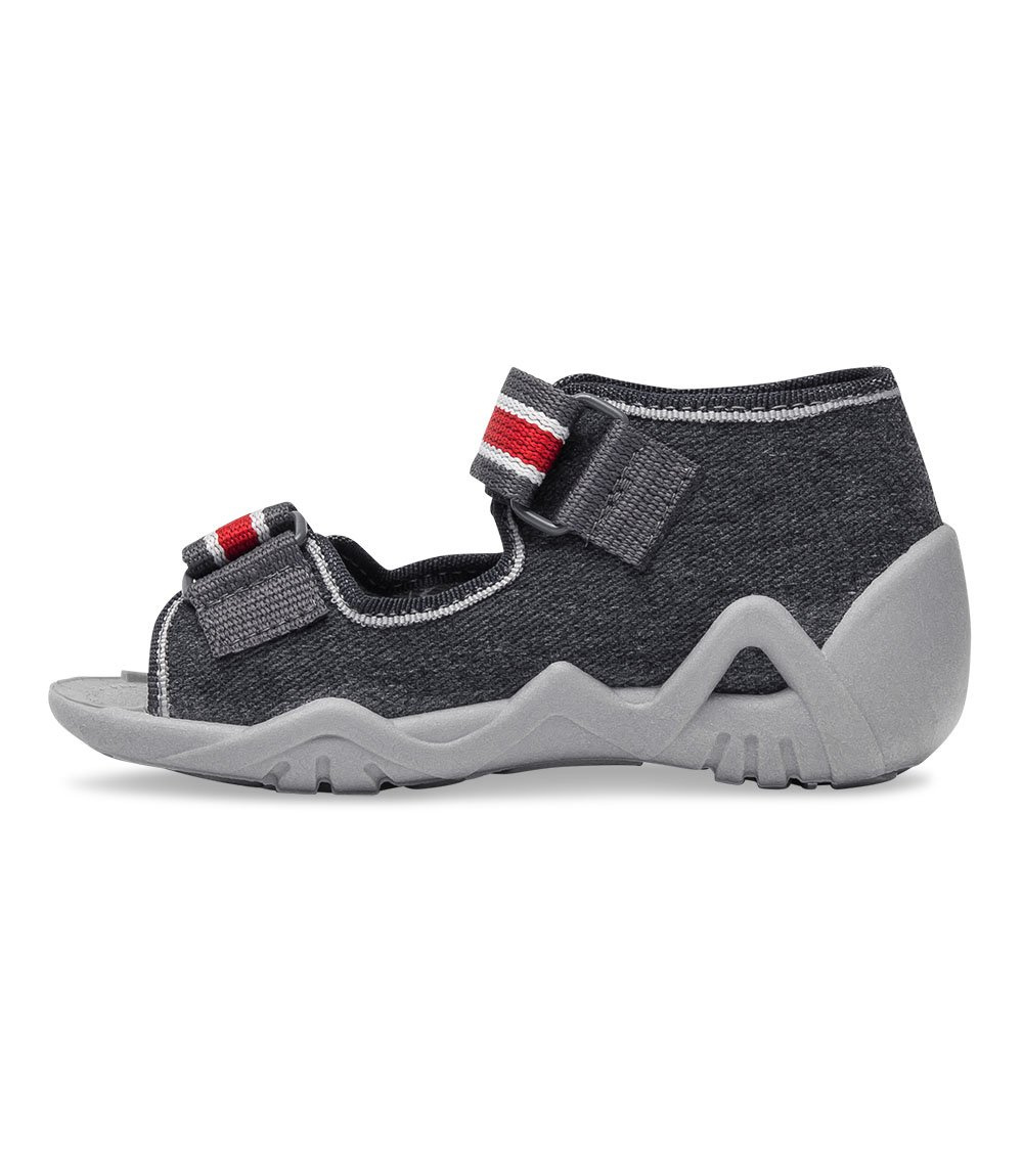 Sztywny zapiętek i odkryte czubki butów zapewniają komfort stopie.
