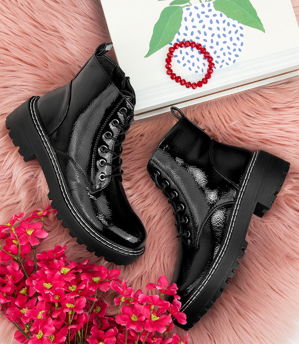 Lakierowane botki Skotnicki wykonane z największą starannością.