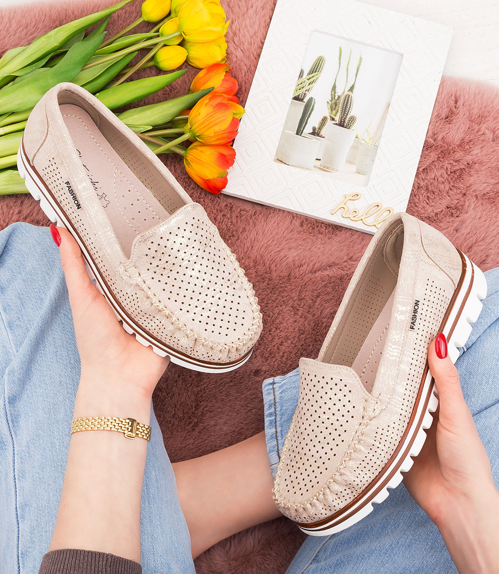 Mokasyny damskie Skotnicki P-3-0503 Złote