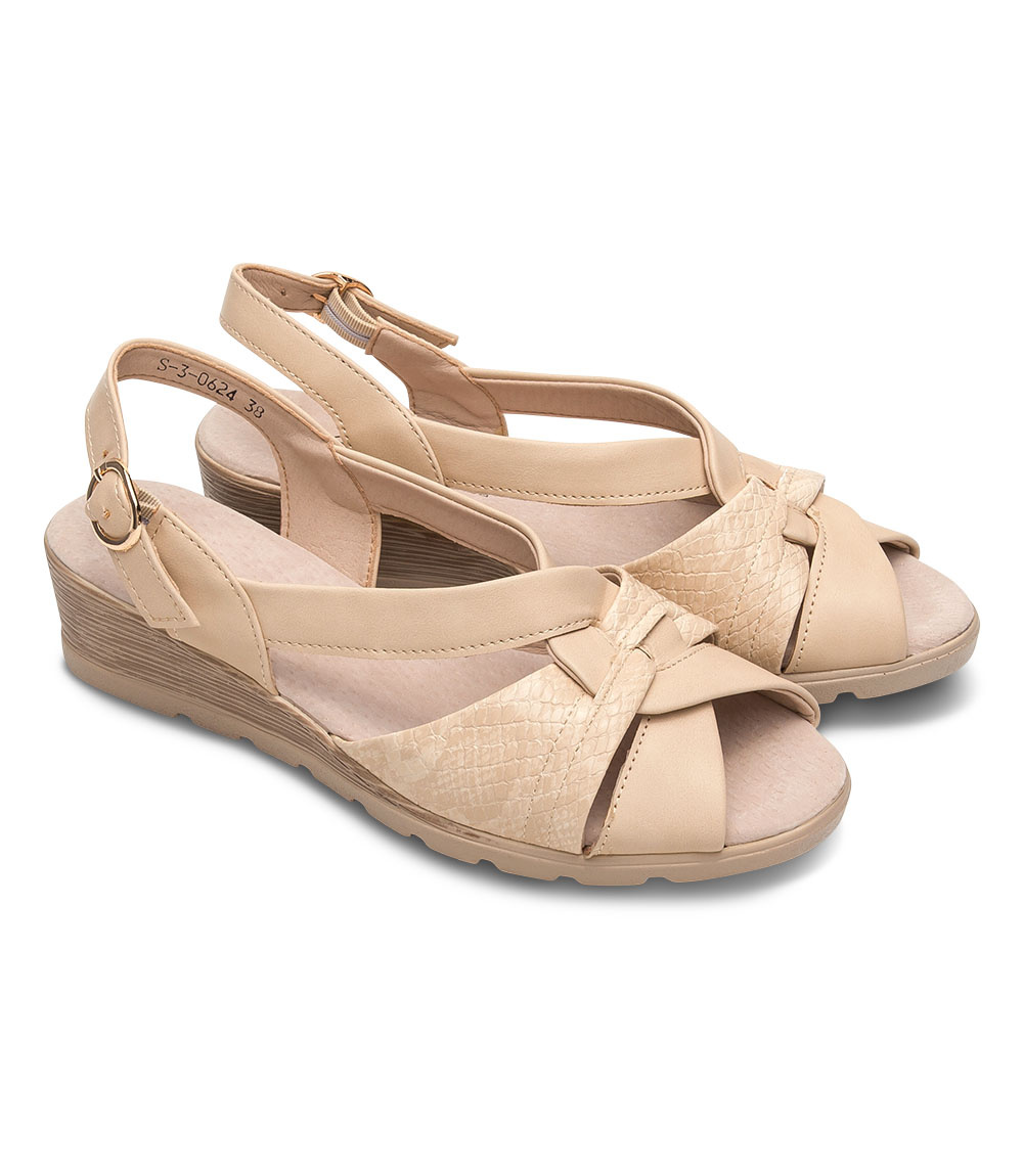 Niski koturn zapewnia komfort chodzenia.