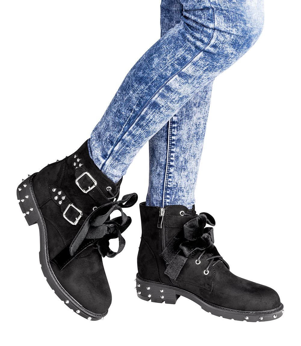 Welurowe kokardy i ekstrawaganckie ćwieki dodają oryginalności.